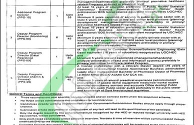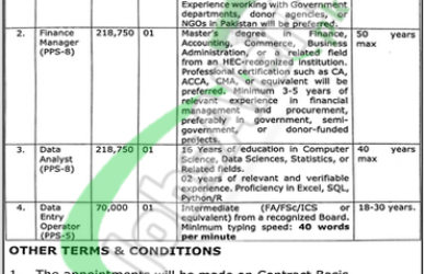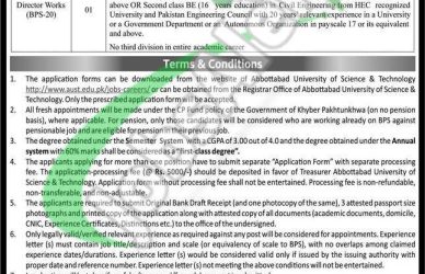 - Applications along with CV, attested copies of educational certificates, experience certificates, CNIC, domicile, and two recent passport-size photographs should reach the following address given below.