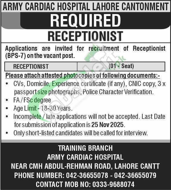 Army Cardiac Hospital JobsArmy Cardiac Hospital JobsLast Date to Apply: November 25, 2025
