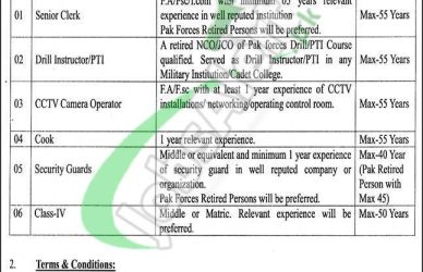 - Interested candidates are required to send their handwritten application with educational and experience certificates, CNIC, Domicile, and passport-size photographs to Cadet College Pishin.