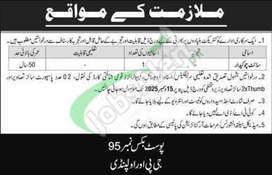 - Applications along with detailed CV, attested copies of educational certificate, experience certificate, CNIC, domicile and recent photographs should reach the following address given below.
