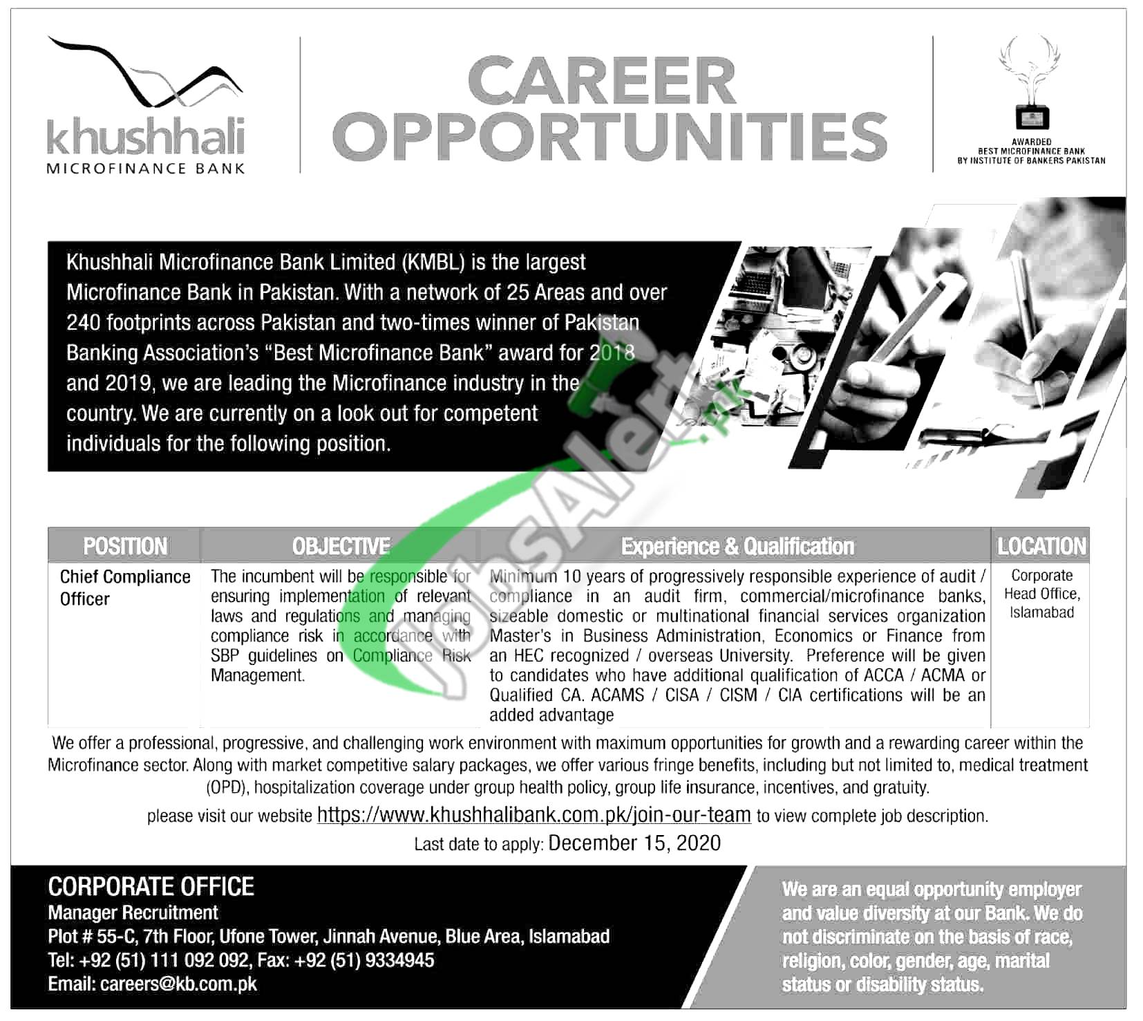 Khushhali Microfinance Bank Jobs 2025 in Pakistan Advertisement