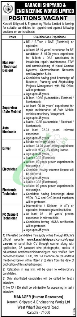 - Candidates may apply online at www.karachishipyard.com.pk/page/careers.