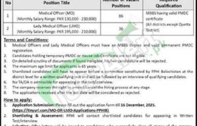 - Applicants can apply by sending their complete application, CV, attested certificates, domicile, passport size photograph, copy of CNIC, NOC (in case of Government employee), and other documents to the address given below.