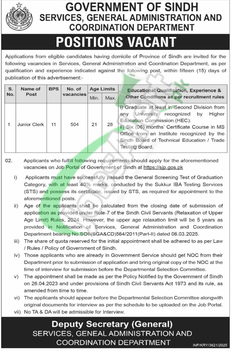 S&GAD Sindh Jobs 2025 Services General Administration and Coordination Department