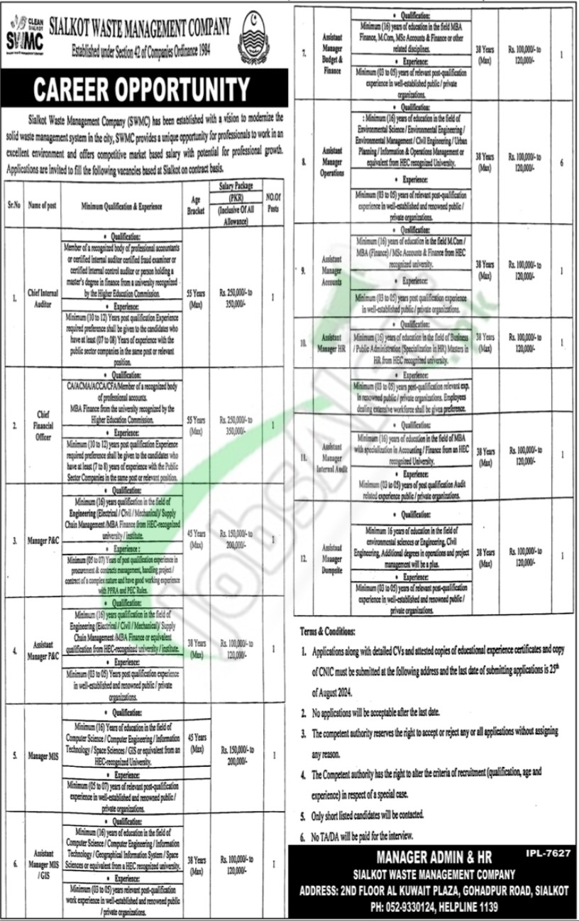 Sialkot Waste Management Company Jobs 2024 SWMC Latest Advertisement